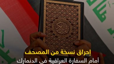 عدد من الأشخاص يقدمون على إحراق نسخة من المصحف أمام السفارة العراقية في الدنمارك