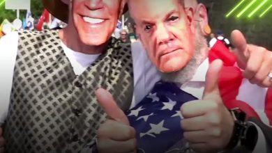 شعارات مختلفة رفعها الألمان الذين خرجوا إلى شوارع دريسدن للاحتجاج تحت شعار “السلام والحرية” مطالبين بوقف تسليم السلاح لأوكرانيا.