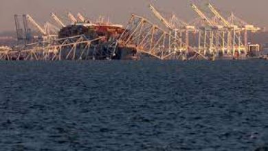 فرق الإنقاذ عكفت على رفع أول جزء من حطام جسر “فرنسيس سكوت كي” المنهار في بالتيمور من المياه للسماح للمراكب…