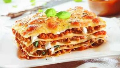 المقاديرلتحضير اللازانيا:450 غرام لازانيا، شرائحلتحضير الحشوة:300 غرام لحم عجل قليل الدهن، مفروم4 طماطم، مقشرين ومفرومين ناعم بدون بذر2 بصل صغير،…