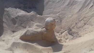 وزارة الأثار: العثور علي تمثال ملكي علي هيئة أبي الهول بتونا الجبل